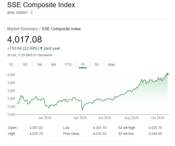 Китайські акції досягли 10-річного максимуму на тлі переговорів між Дональдом Трампом і Сі Цзіньпіном у Південній Кореї, спрямованих на вирішення кризової ситуації між країнами.
