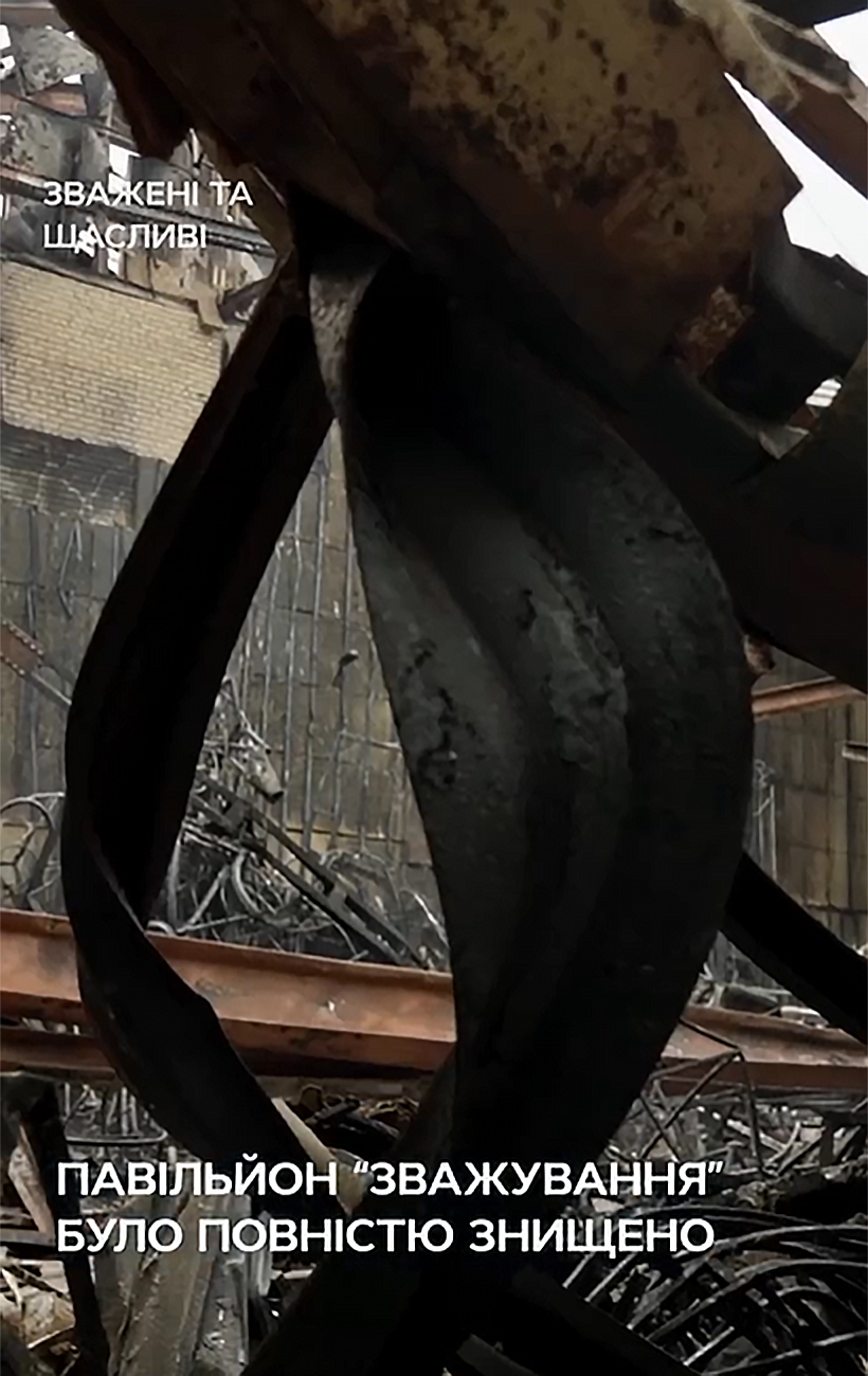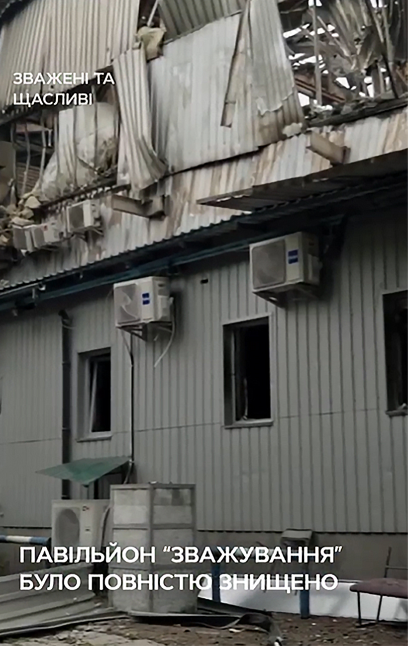 Павільйон СТБ знищений внаслідок атаки РФ (скриншот із відео)